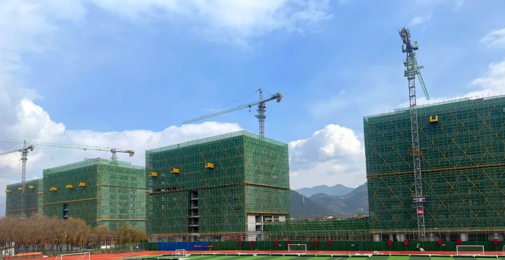 據(jù)悉,該項目位于麗江師范高等??茖W(xué)校校園內(nèi),包含A區(qū)學(xué)生宿舍、食堂、后勤附屬用房、東大門、足球場改造、新建籃球場、B區(qū)實驗實訓(xùn)中心及室外附屬工程。本次封頂?shù)腁區(qū)學(xué)生宿舍樓,含地下一層+隔震層,地上11層,地下建筑面積為17882.50㎡,地上部分建筑面積為68698.94㎡。