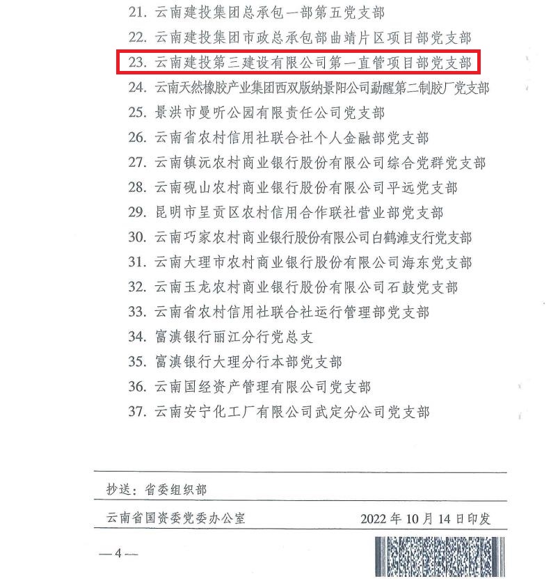 近日,按照云南省國資委黨委關(guān)于黨支部規(guī)范化建設(shè)達(dá)標(biāo)創(chuàng)建工作部署,在逐級推薦、擇優(yōu)遴選的基礎(chǔ)上,公司第一直管項(xiàng)目部黨支部通過復(fù)核驗(yàn)收,獲云南省國資委黨委命名的2021年度“規(guī)范化建設(shè)示范黨支部”榮譽(yù)。