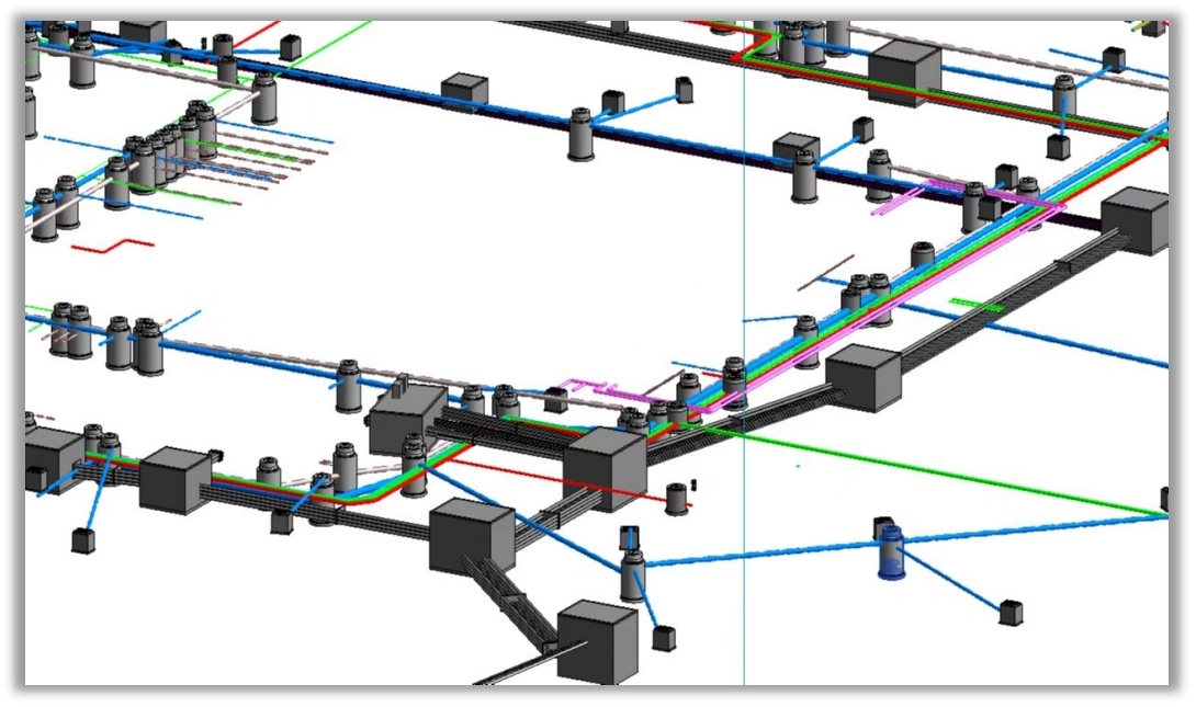 ▲室外綜合管網(wǎng)分層布置,實(shí)現(xiàn)圖紙集成化和可視化