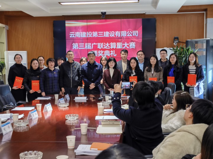 公司成本管理部兩會連開1.公司第三屆廣聯(lián)達算量大賽頒獎典禮順利舉行2.公司召開2021年第四季度經(jīng)濟業(yè)務(wù)會暨年終總結(jié)考核會公司第三屆廣聯(lián)達算量大賽頒獎典禮順利舉行1月10日下午,由公司工會和成本管理部組織的第三屆廣聯(lián)達算量大賽頒獎典禮在二號會議室舉行。公司黨委副書記、副董事長、總經(jīng)理彭云,黨委副書記、工會主席張欣,總經(jīng)...