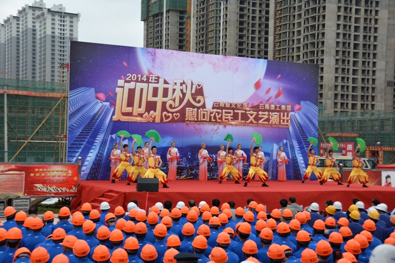 ?10月12日,全國總文工團、云南省總工會組織的“工會與職工心連心”大型慰問演出在集團東三環(huán)方旺回遷房項目指揮部露天球場舉行。全總文工團、云南省總工會的相關(guān)領(lǐng)導(dǎo),云南建投集團黨委副書記、總經(jīng)理劉勇、集團工會主席陳文雙及參建各單位領(lǐng)導(dǎo)與項目職工、農(nóng)名工一起觀看了這場精彩紛呈的文藝演出。??此次慰問演出以《相親相愛》、《兄...
